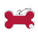Zawieszka Adresówka Identyfikator z grawerem dla psa i kota kość czerwona z obramówką S