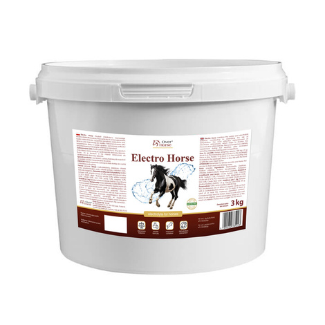 Wyrównanie poziomu elektrolitów w organizmie konia. Produkt zapobiega odwodnieniu, uzupełnia niedobory elektrolitów, skraca czas regeneracji organizmu. Szczególnie polecany jako uzupełnienie diety podczas wzmożonej potliwości (wysiłek fizyczny, starty w zawodach, treningi, transport, upały) oraz w przypadkach osłabienia organizmu, gorączki, porodu. ELECTRO Horse umożliwia szybkie uzupełnienie niedoborów, skraca czas regeneracji organizmu konia i jego powrót do pełni sił. Dodatkowo ELECTRO Horse dostarcza łatwo przyswajalnych węglowodanów, które stanowią źródło energii dla osłabionego organizmu.