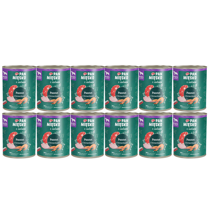 Pan Mięsko karma mokra dla psa z ziołami pasztet z krewetkami zestaw 12 x 800 g