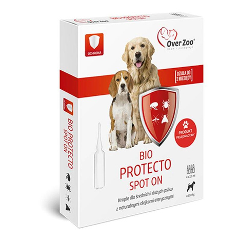 Over Zoo Bio Protecto Spot On dla psów średnich i dużych krople na bazie naturalnych olejków eterycznych 4 x 2,5 ml