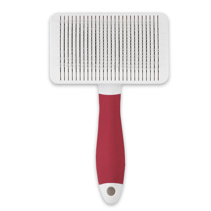 Igły wykonane ze stali nierdzewnej dla trwałości i wydajności, specjalnie wygięte, aby efektywnie rozczesywać sierść i kołtuny. Samoczyszczący mechanizm ułatwiający szybkie i łatwe pozbycie się zebranych włosów. Ergonomiczny, miękki uchwyt zapewnia wygodę i łatwość użycia.