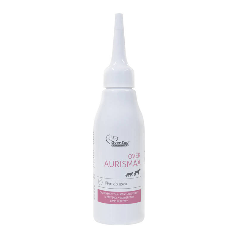 Over Zoo Aurismax jest produktem, którego starannie dobrane składniki oraz właściwe pH pomagają utrzymać oraz przywrócić właściwe funkcjonowanie kanału słuchowego. Polecany u psów i kotów ze skłonnością do niepożądanych stanów ucha zewnętrznego na tle mieszanym.
