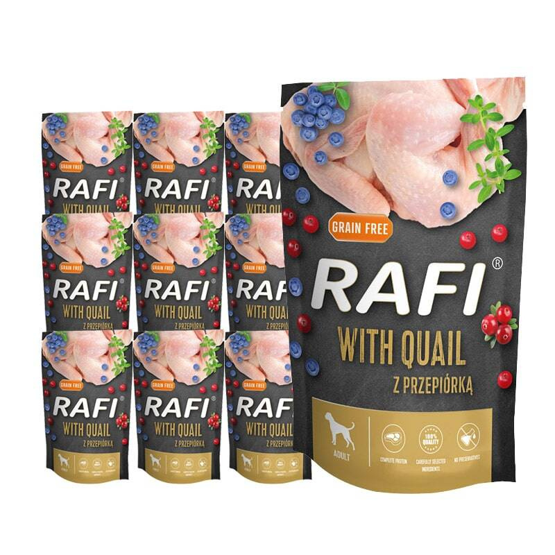 Mokra karma dla psa Rafi z przepiórką saszetka zestaw 10 x 500 g