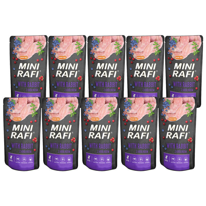 Mokra karma dla psa Mini Rafi z królikiem zestaw 10 x 150 g
