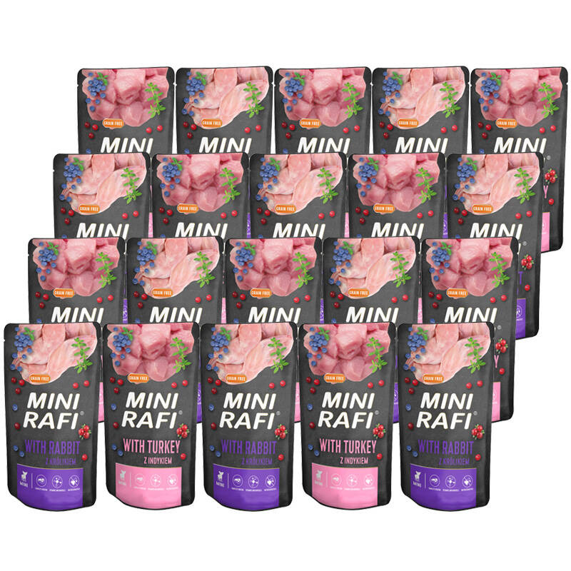 Mokra karma dla psa Mini Rafi mix smaków indyk i królik 20 x 150 g
