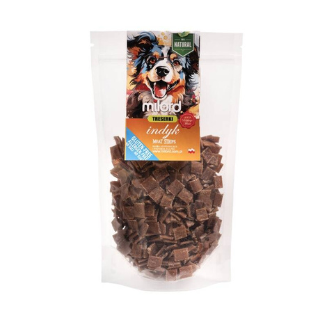 Treningówki te doskonale sprawdzą się dla psów każdej wielkości i mogą być stosowane również jako karma uzupełniająca. Zostały one wyprodukowane wyłącznie z mięsa z indyka, a cały proces produkcji odbywał się w Polsce pod rygorystycznym nadzorem inspekcji weterynaryjnej (MILORD WNI 24168303).