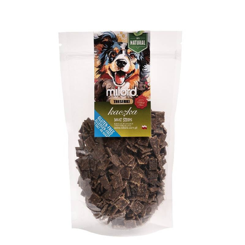 Treningówki z kaczki to naturalny przysmak dla psa, stworzony z myślą o nagradzaniu czworonożnych przyjaciół podczas pracy, treningu i spaceru. Wyprodukowane są one wyłącznie z mięsa mięśniowego, co zapewnia wysoką jakość i wartość odżywczą. Ich forma to kwadraciki o wielkości ok. 1x1 cm i grubości ok. 2-3 mm, co czyni je idealnymi do nagradzania każdego pupila.