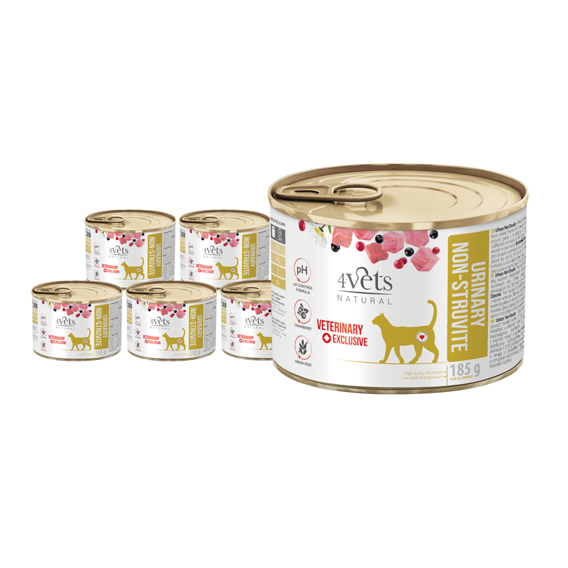 Mokra karma weterynaryjna dla kota ze schorzeniami dróg moczowych 4Vets Natural Urinary Non-struvite zestaw 6 x 185 g