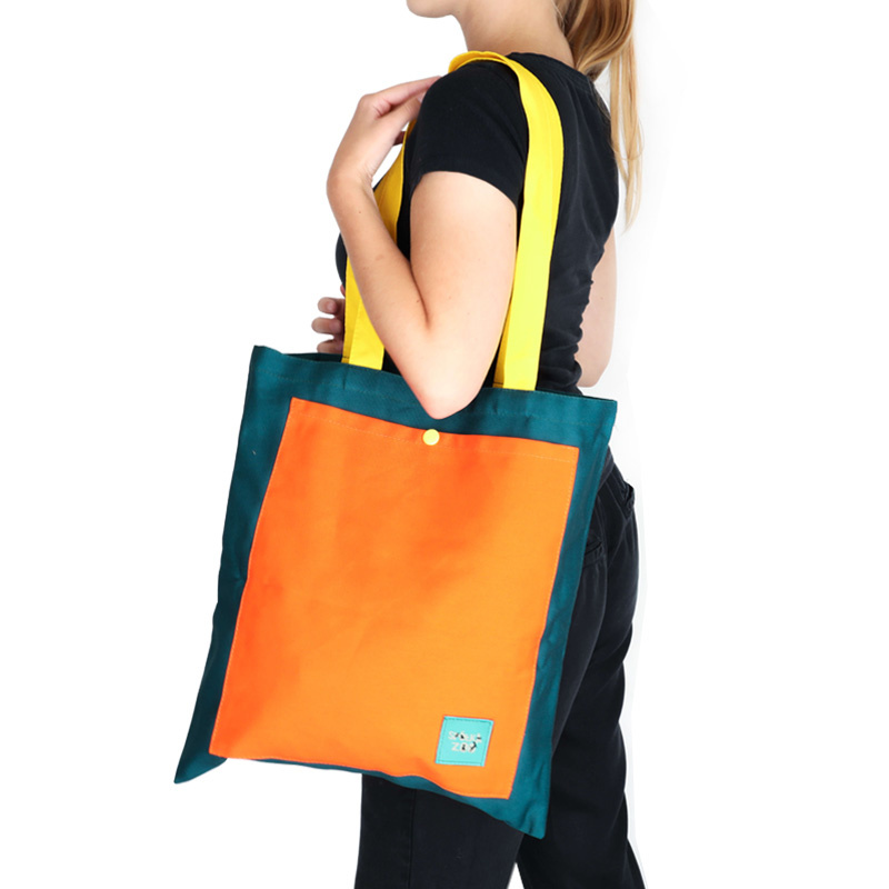 Spółka Zoo Design Materiałowa torba z kieszenią zielono-pomarańczowa