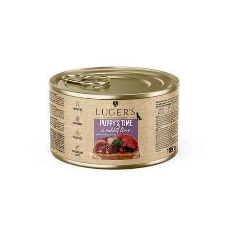 Linia karm mokrych Luger's Puppy’s Time uwzględnia w swoim składzie wszystkie składniki odżywcze, które są niezbędne do zapewnienia prawidłowego wzrostu szczeniąt. Odpowiednie, pełnowartościowe żywienie psów w tym okresie daje gwarancję zdrowia i prawidłowego dalszego rozwoju organizmu. Z tego powodu skład karm Luger's Puppy’sTime został precyzyjnie opracowany zgodnie z zaleceniami żywieniowymi dla tej fazy wzrostu. Użyte do produkcji wysokiej jakości mięso i podroby dostarczają pełnowartościowego białka i niezbędnych kwasów z rodziny n-3 oraz n-6, tak ważnych dla szczeniąt. Odpowiednia gęstość energetyczna karmy oraz proporcje składników mineralnych gwarantują prawidłowy rozwój układu kostnego i mięśniowego. Naturalnym źródłem wielu związków biologicznie czynnych stymulujących funkcje trawienne są drożdże piwne, będące źródłem prebiotyków: mannanooligosacharydów oraz β-glukanów. Sproszkowany sok z buraka, rozmaryn suszony oraz żurawina zwiększają ilość przeciwutleniaczy i substancji pozytywnie wpływających na szereg funkcji rozwijającego się organizmu.