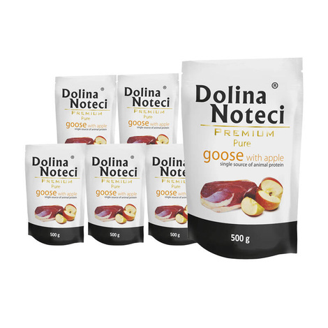 Bezglutenowagęś 60% (serca, wątroba, mięso 10%), rosół z gęsi, jabłko 7%, substancje mineralne.