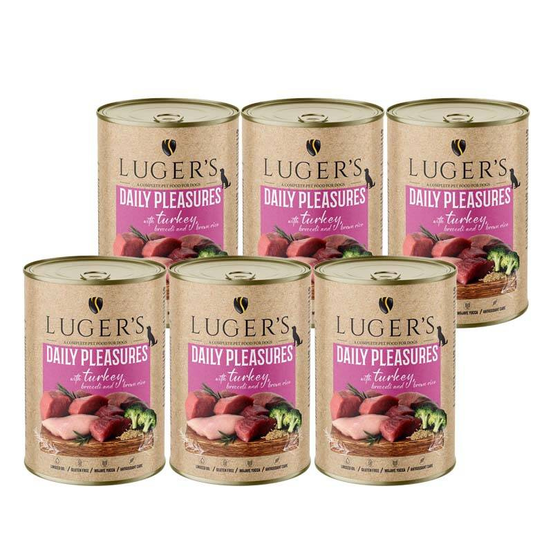 Pełnoporcjowa mokra karma Luger's Daily Pleasures z indykiem, brokułem i ryżem brązowym to idealny wybór w codziennej diecie dorosłych psów, szczególnie tych z delikatnym przewodem pokarmowym.
