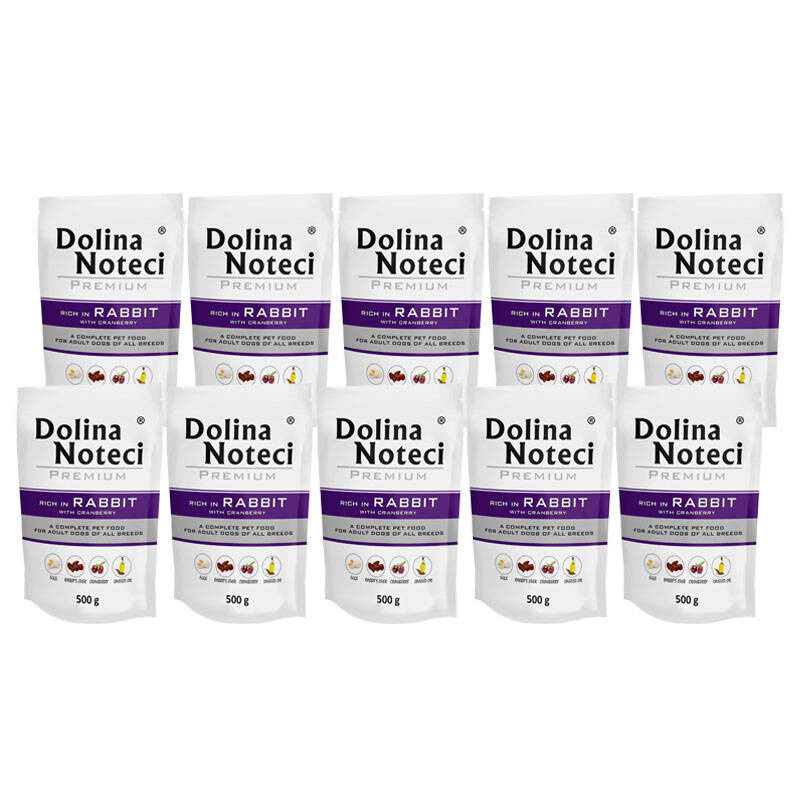 10 x Mokra karma dla psa Dolina Noteci Premium bogata w królika z żurawiną saszetka 500 g