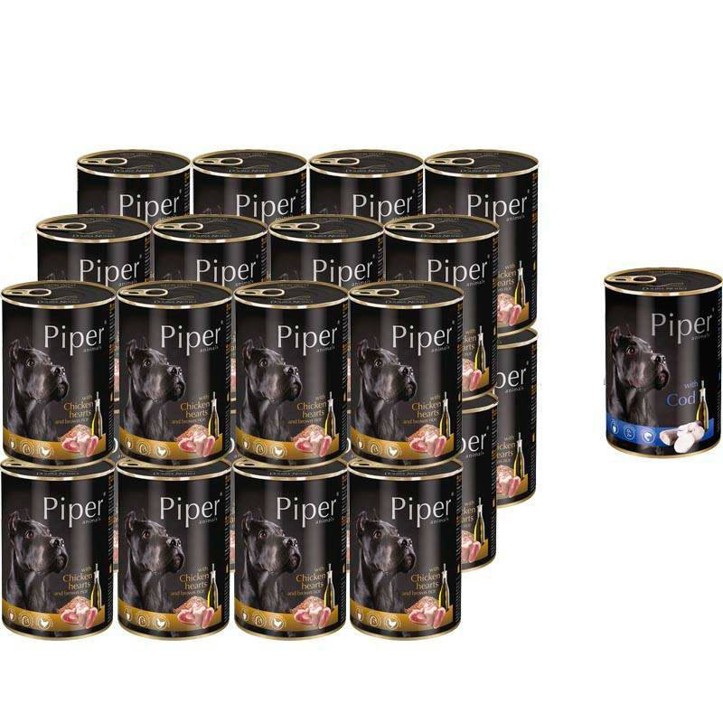 Mokra karma dla psa Piper Animals z sercami kurczaka i ryżem 24 x 400 g + gratis Piper Animals z dorszem 400 g