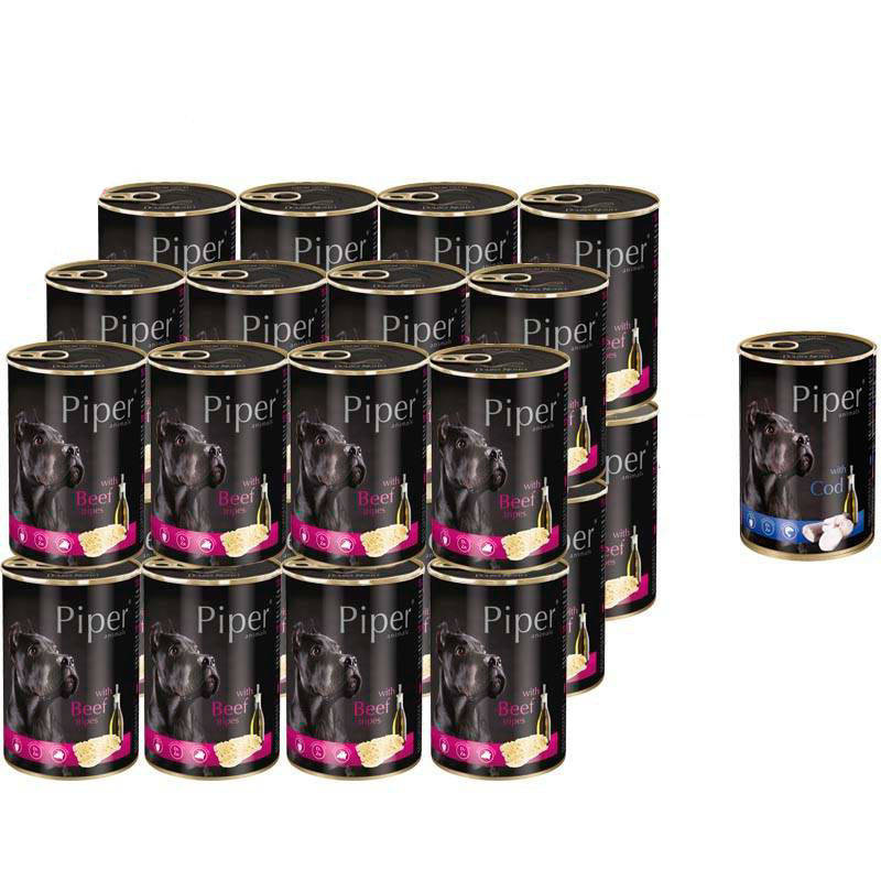 Mokra karma dla psa Piper Animals z żołądkami wołowymi zestaw 24 x 400 g + gratis Piper Animals z dorszem 400 g