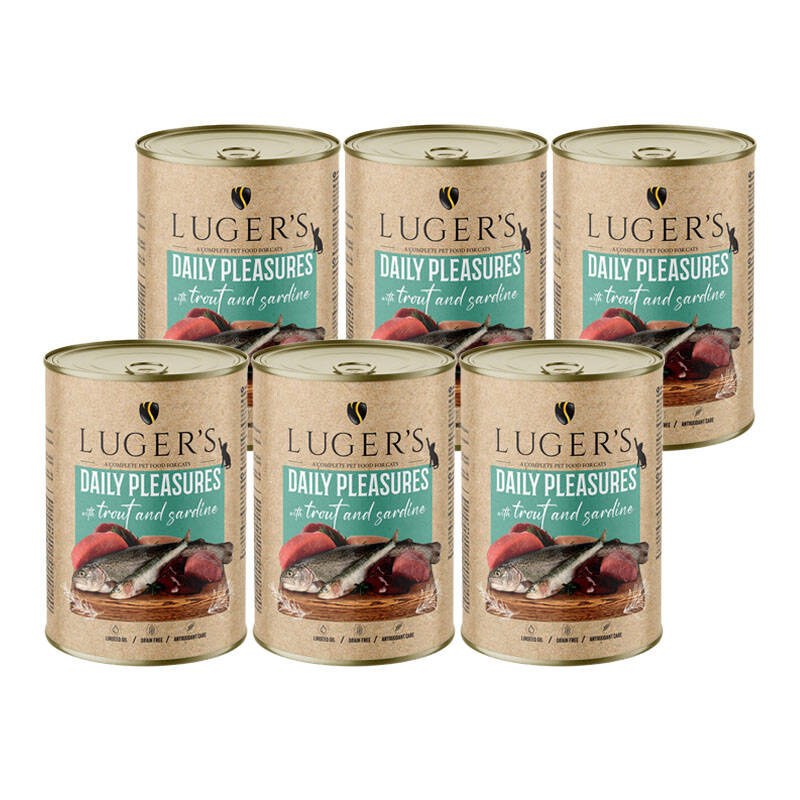 6 x Karma mokra dla kota Luger's Daily Pleasures z pstrągiem i sardynką 400 g
