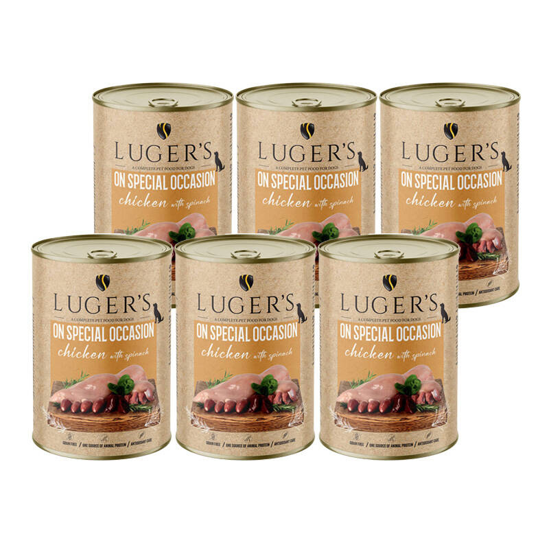Karma mokra dla psa Luger's On Special Occasion kurczak ze szpinakiem zestaw 6 x 400 g