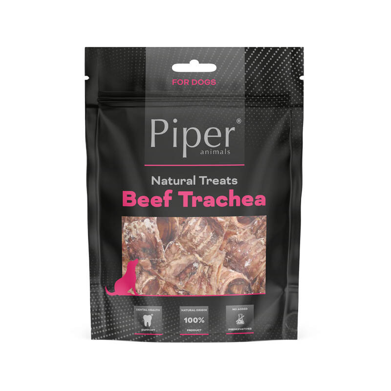 Piper Natural Treats suszona tchawica wołowa to zdrowy i smaczny przysmak, bez sztucznych dodatków, barwników i konserwantów, który psy pokochają.