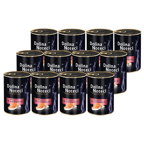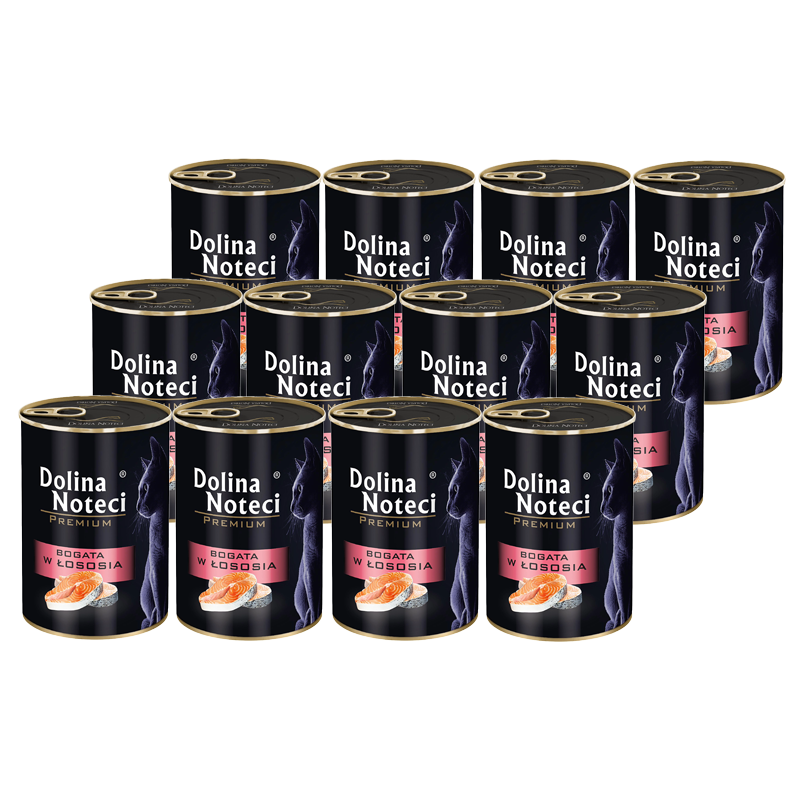 Mokra karma dla kota bogata w łososia Dolina Noteci Premium zestaw 12 x 400 g