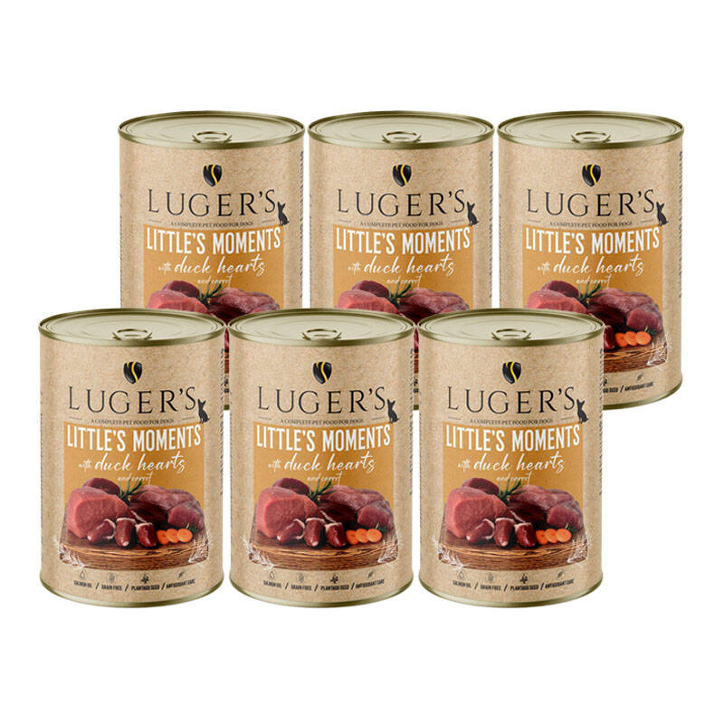 Karma mokra dla psów małych ras Luger's Little's Moments z sercami z kaczki i marchewką zestaw 6 x 400 g