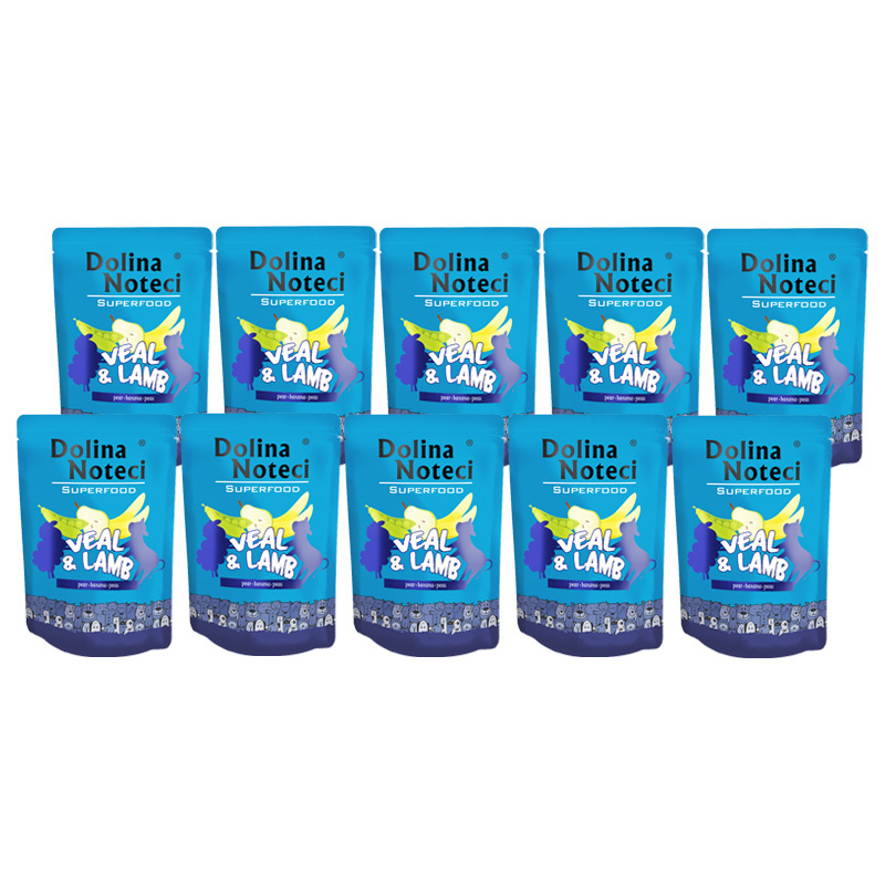 10 x Mokra karma dla psa Dolina Noteci Superfood cielęcina i jagnięcina saszetka 300 g
