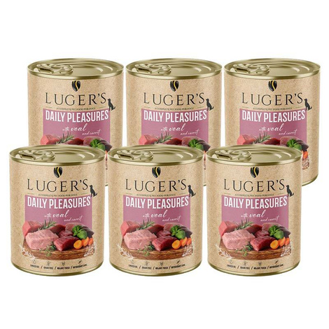 6 x Karma mokra dla psa Luger's Daily Pleasures z cielęciną i marchewką 800 g