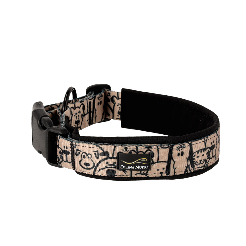 Elegancka obroża dla psa z trwałym plastikowym zapięciem, wykonana z odpornej na przetarcia taśmy w uroczy wzór beżowych piesków i kotków. Klasyczny design w delikatnych kolorach przypadnie do gustu zarówno miłośnikom prostoty, jak i fanom oryginalnych akcentów. Obroża jest lekka i posiada wygodną regulację, umożliwiającą dopasowanie do obwodu szyi każdego psa, niezależnie od jego rozmiaru. Delikatna w dotyku, zapobiega wycieraniu sierści, co czyni ją idealnym rozwiązaniem również dla młodych i niecierpliwych psów, którym codzienne zakładanie obroży bywa wyzwaniem. Materiał obroży jest odporny na odkształcenia oraz zmienne warunki atmosferyczne, a przy tym łatwy do utrzymania w czystości – wystarczy ją przetrzeć wilgotną szmatką, aby przywrócić jej świeży wygląd.
