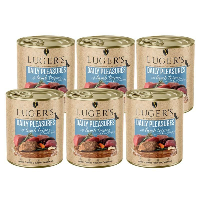 Karma mokra dla psa Luger's Daily Pleasures z żołądkami jagnięcymi, marchewką i pietruszką zestaw 6 x 800 g