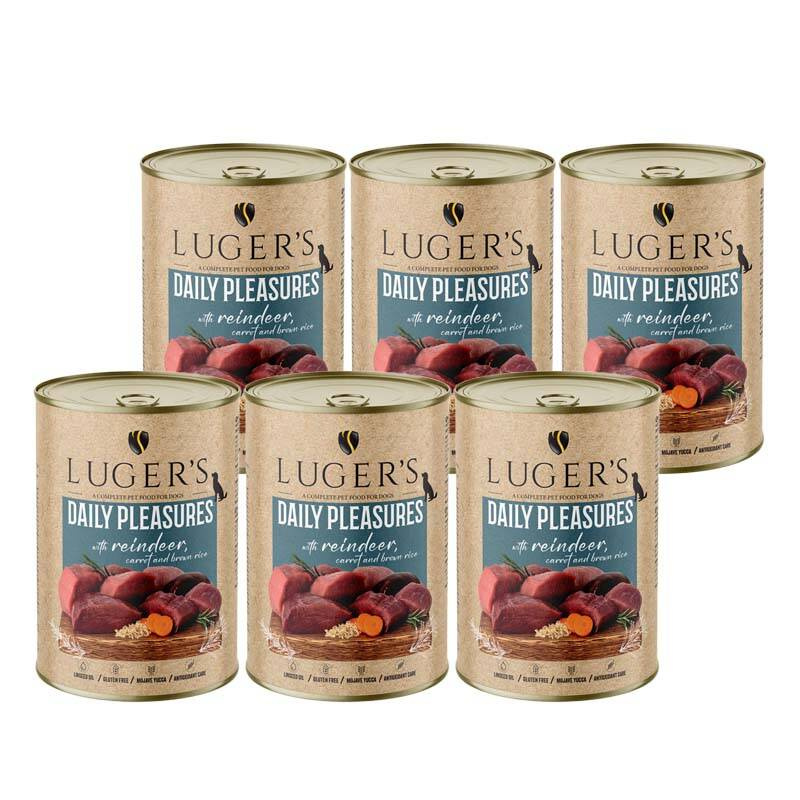 6 x Karma mokra dla psa Luger's Daily Pleasures z reniferem, marchewką i ryżem brązowym 400 g