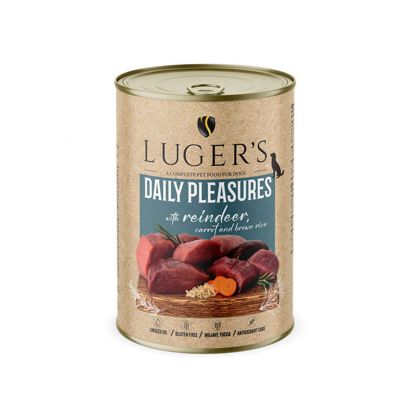 Karma mokra dla psa Luger's Daily Pleasures z reniferem, marchewką i ryżem brązowym zestaw 6 x 400 g