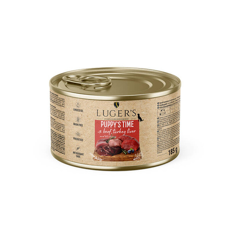 Karma mokra dla psa szczeniaka Luger's Puppy's Time z wołowiną, wątróbką z indyka i borówką zestaw 6 x 185 g