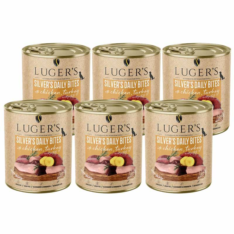 Karma mokra dla psa Luger's Silver's Daily Bites z kurczakiem, indykiem i ziemniakiem zestaw 6 x 800 g