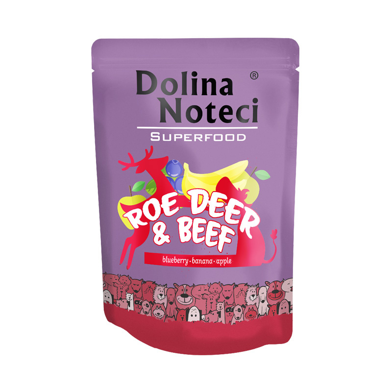 sarna 40% (mięso), wołowina 40% (mięso 10%, płuca, wątroba, serca, żołądki), rosół, borówka amerykańska 2%, żurawina 1,5%, substancje mineralne, banan 1%, jabłko 0,5%, drożdże piwne suszone 0,3% (źródło prebiotyków: mannanooligosacharydów i β-glukanów), siemię lniane 0,1%, nasiona babki płesznik, jukka Mojave, wodorosty morskie, omułek nowozelandzki zielonowargowy 0,02%, glukozamina 0,02%, siarczan chondroityny 0,02%.