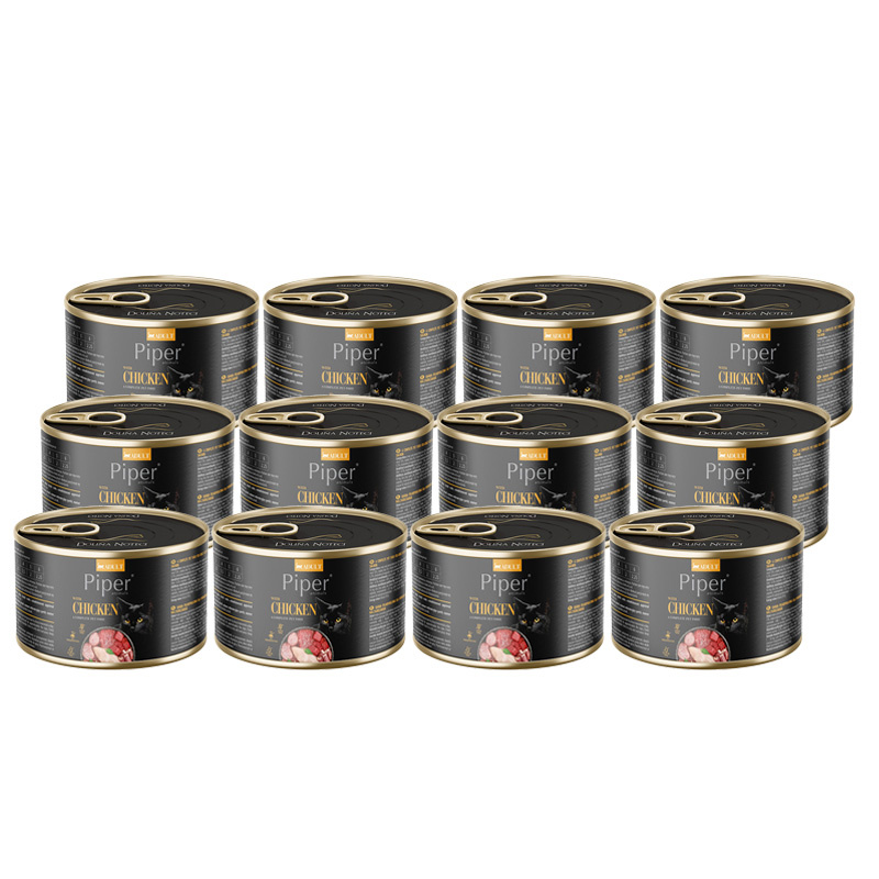Piper z kurczakiem to pełnoporcjowa karma dla dorosłych kotów wszystkich ras, której skład został tak opracowany, aby spełniał ich codzienne potrzeby żywieniowe. Receptura bazuje na mięsie i podrobach z kurczaka, dzięki czemu jest bogata w naturalnie występujący w tych surowcach kwas arachidowy, niezbędny do prawidłowego funkcjonowania organizmu dorosłych kotów. Dodatek oleju lnianego uzupełnia skład karmy w kwas linolenowy, a także korzystanie wpływa na stan skóry i sierści. Ilość tauryny pokrywa fizjologiczną normę, dzięki czemu proces trawienia tłuszczu i białek zachodzi w sposób prawidłowy. W karmach Piper wykorzystano dodatek kocimiętki, która oprócz tego, że jest źródłem szeregu związków biologicznie czynnych, to charakteryzując się wysokimi walorami zapachowymi, zwiększa atrakcyjność karmy. Co więcej, poprzez obecność lotnych olejków eterycznych wpływa na poprawę funkcji trawiennych przewodu pokarmowego. Zbilansowany stosunek wapnia i fosforu wspiera zdrową mineralizację kości. Wysoka jakość surowców sprawia, że mokra karma Piper z kurczakiem jest wyjątkowo smaczna, a także stanowi pełnowartościowy posiłek każdego dnia.