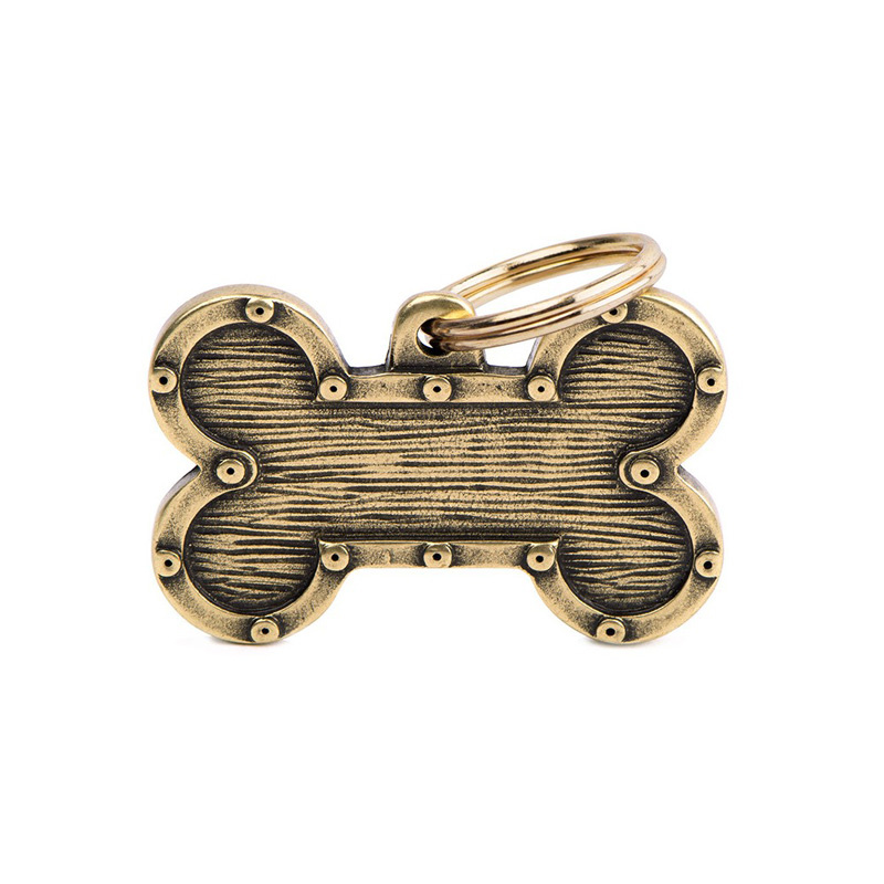 Zawieszka Adresówka Identyfikator z grawerem dla psa i kota kość mosiądz złoty z obramówką L