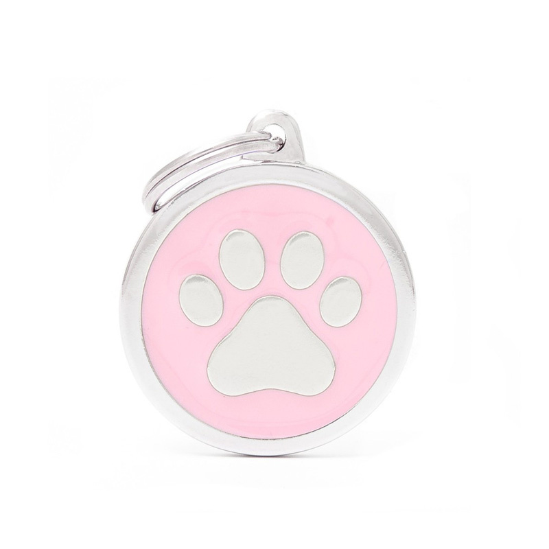 Zawieszka Adresówka Identyfikator z grawerem dla psa i kota kółko z łapką różowe