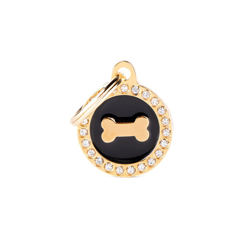 Zawieszka Adresówka Identyfikator z grawerem dla psa i kota kółko z kością złote glam