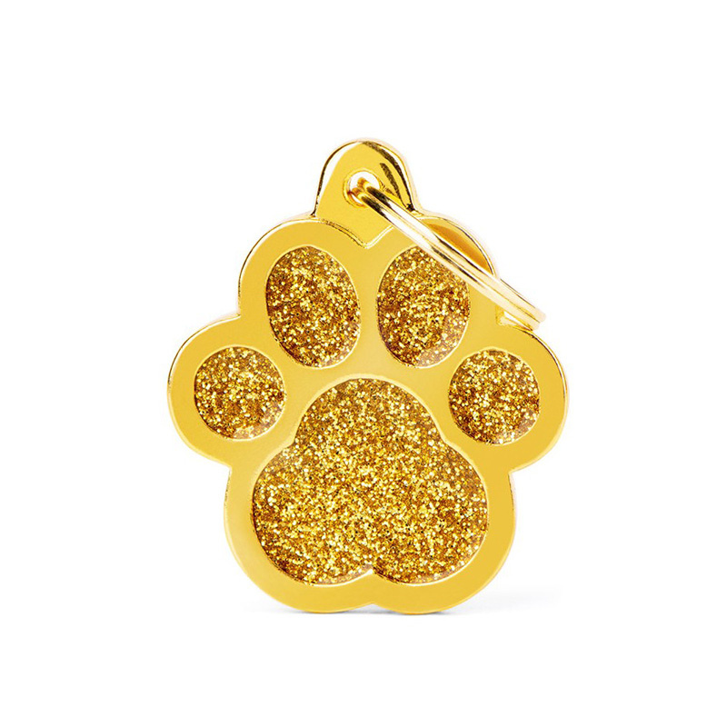 Zawieszka Adresówka Identyfikator z grawerem dla psa i kota łapka złota brokat duża