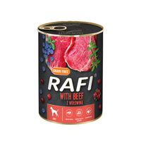 - Linia RAFI to pełnoporcjowe karmy pokrywające w 100% dzienne zapotrzebowanie na wszystkie składniki odżywcze, mineralne i witaminowe.