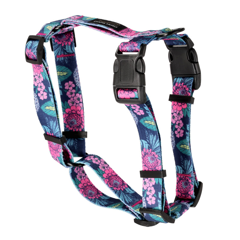 Szelki guard dla psa sprawdzą się doskonale jako alternatywa dla klasycznej obroży, zwłaszcza jeśli pies jest bardzo żywiołowy. Trzymanie psa na smyczy podpiętej do szelek sprawia, że podczas gwałtownych ruchów zwierzę nie czuje nadmiernego ciągnięcia w okolicy klatki piersiowej. Tego typu szelki sprawdzą się również w przypadku psów, którym zdarzają się ucieczki i potrafią same oswobodzić się z obroży. Szelki zapewniają swobodę ruchów, wykonane z mocnej, odpornej na zaciągnięcia taśmy w przyciągający spojrzenia kwiatowy wzór. Metalowy ring pokryty został warstwą niklu podnoszącą jego trwałość, ale także chroniącą element przed szkodliwym działaniem korozji. Dzięki regulacji można dopasować je idealnie do wymiarów psa i zapewnić mu komfort noszenia oraz maksimum bezpieczeństwa a zdjęcie szelek wymaga pomocy człowieka. Stanowią świetny zestaw ze smyczą – przepinaną lub zwykłą, uszytą z tego samego materiału. Szelki są dostępne w kilku rozmiarach. To doskonała propozycja zarówno na letnie, jak i jesienne spacery.