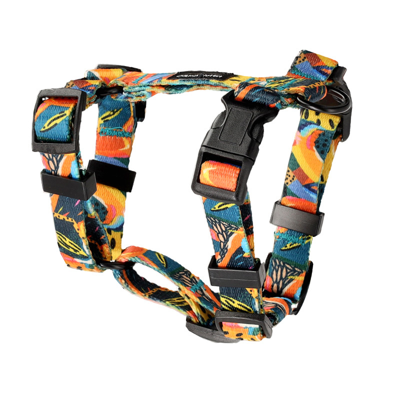 Szelki guard dla psa sprawdzą się doskonale jako alternatywa dla klasycznej obroży, zwłaszcza jeśli pies jest bardzo żywiołowy. Trzymanie psa na smyczy podpiętej do szelek sprawia, że podczas gwałtownych ruchów zwierzę nie czuje nadmiernego ciągnięcia w okolicy klatki piersiowej. Tego typu szelki sprawdzą się również w przypadku psów, którym zdarzają się ucieczki i potrafią same oswobodzić się z obroży. Szelki zapewniają swobodę ruchów, wykonane z mocnej, odpornej na zaciągnięcia taśmy w przyciągający spojrzenia egzotyczny wzór. Metalowy ring pokryty został warstwą niklu podnoszącą jego trwałość, ale także chroniącą element przed szkodliwym działaniem korozji. Dzięki regulacji można dopasować je idealnie do wymiarów psa i zapewnić mu komfort noszenia oraz maksimum bezpieczeństwa a zdjęcie szelek wymaga pomocy człowieka. Stanowią świetny zestaw ze smyczą – przepinaną lub zwykłą, uszytą z tego samego materiału. Szelki są dostępne w kilku rozmiarach. To doskonała propozycja zarówno na letnie, jak i jesienne spacery.