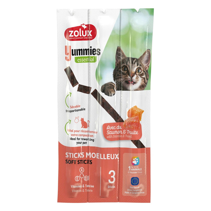 Zolux Yummies Miękkie przysmaki dla kota pałeczki łosoś pstrąg 3 szt. po 5 g