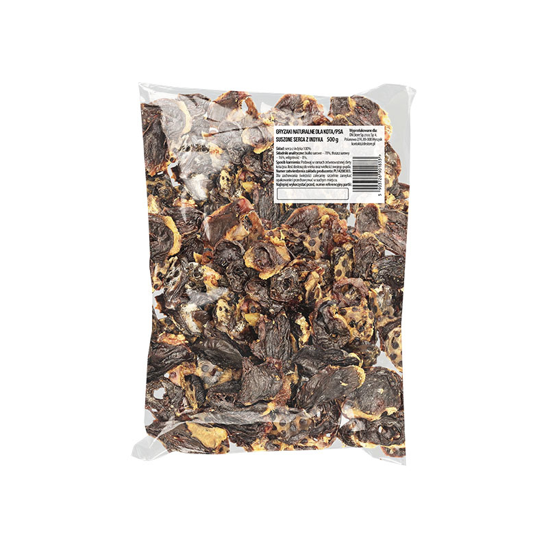 • Naturalny przysmak dla psa i kota serca z indyka 500 g