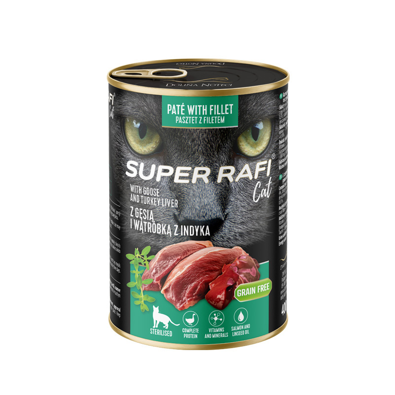 Karma mokra dla kotów sterylizowanych Super Rafi Cat z gęsią i wątróbką z indyka 400 g
