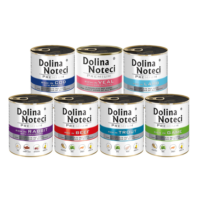 - Dolina Noteci Premium Pełnoporcjowa karma dla dorosłych psów wszystkich ras zestaw mix smaków bez drobiu 7 x 800 g