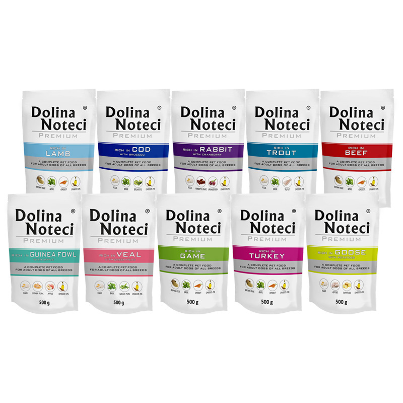Mokra karma dla psa Dolina Noteci Premium zestaw mix smaków bez kurczaka 10 x 500 g