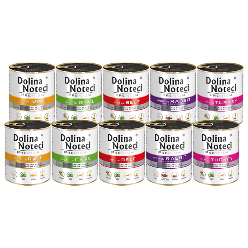 Mokra karma dla psa Dolina Noteci Premium mix smaków bez ryb i kurczaka zestaw 10 x 800 g