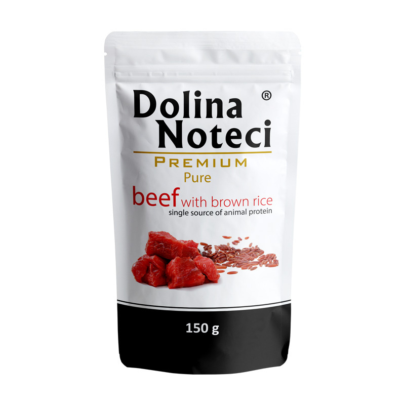 Mokra karma dla psa alergika Dolina Noteci Premium Pure bogata w wołowinę z ryżem brązowym saszetka 150 g