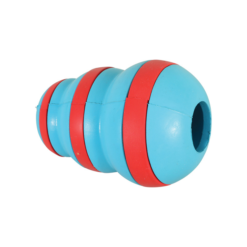 • Zabawka w kształcie stożka – stabilna i atrakcyjna dla psa dzięki nieregularnemu toczeniu.