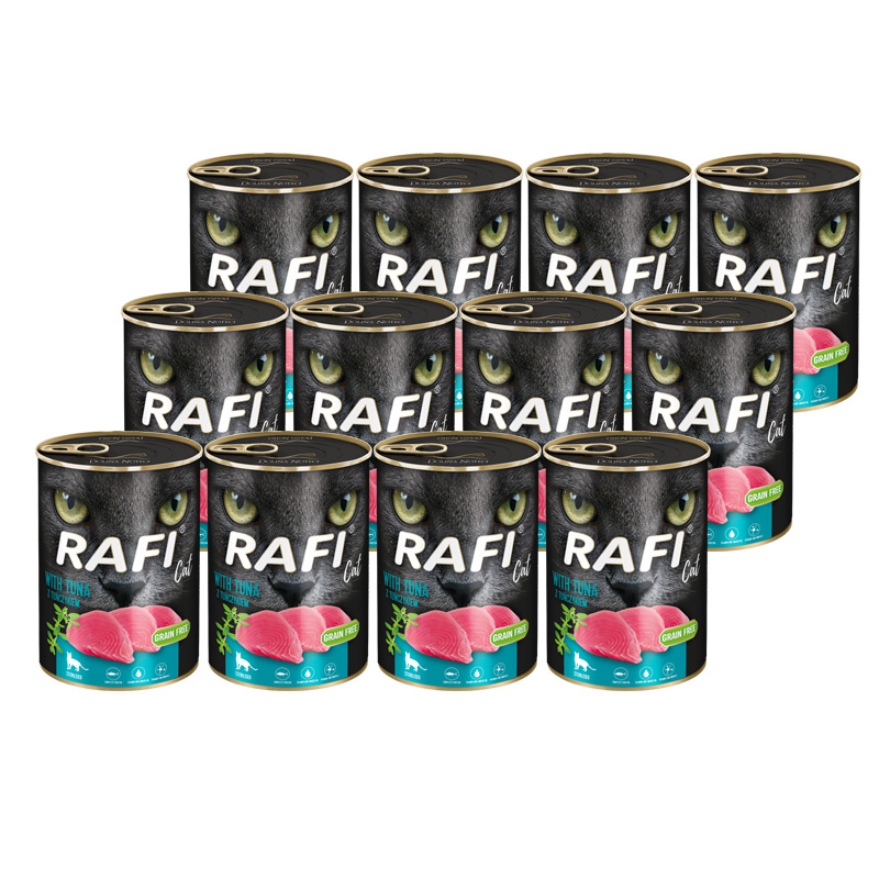 Bezglutenowamięso i produkty pochodzenia zwierzęcego 45%, ryby i produkty rybne 10% (mięso z tuńczyka 4%), oleje i tłuszcze (olej lniany 0,6%, olej z łososia 0,5%), produkty pochodzenia roślinnego (w tym skrobia grochowa), substancje mineralne, tymianek suszony 0,01%.